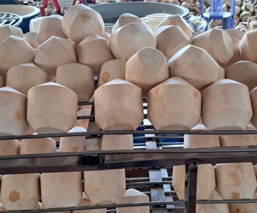 Sau khi thu hoạch, tuyển chọn từ những quả dừa xiêm ngon nhất, các đơn vị sản xuất sẽ tiến hành cắt phần vỏ ở hai đầu của quả dừa và tạo thành phong cách như viên kim cương. hơn và thu hút được sự chú ý của nhiều khách hàng hơn là chắc chắn. Khi uống, bạn chỉ cần cạo nhẹ ph cần đầu của quả dừa để rút ống hút vào là được. nước dừa mà không cần phải mất quá nhiều sức mạnh để chặt bỏ phần vỏ.